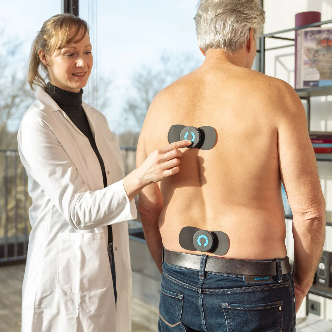 This device uses NMES (Neuromuscular Electrical Stimulation), which works deeper into the muscles. It not only helps relieve pain but also stimulates circulation and activates the muscles to reduce swelling and stiffness. As a result, it is particularly effective for issues such as chronic pain, lower back pain, and mobility problems.